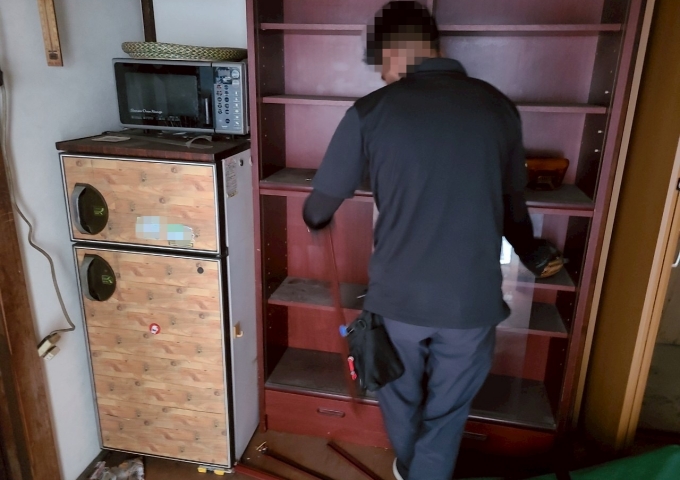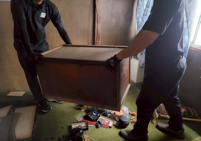 不用品回収後は解体になるとの事で、建具への養生が必要ない分作業内容が軽減されました。