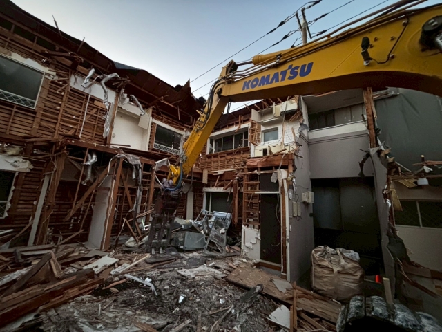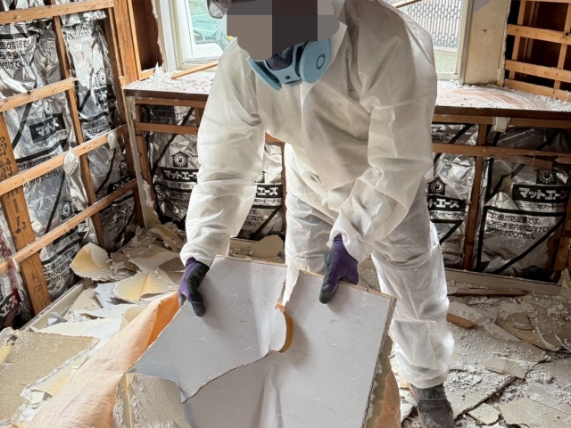 | 工事内容 | シート養生・躯体解体工事(重機)・基礎撤去工事・土間撤去処分・玄関タイル土間撤去処分・駐車場土間撤去処分・化粧CB撤去処分・樹木撤去処分・鉄骨階段撤去処分・蛇腹スライド門扉・物置撤去処分・アスベスト検体採取 |