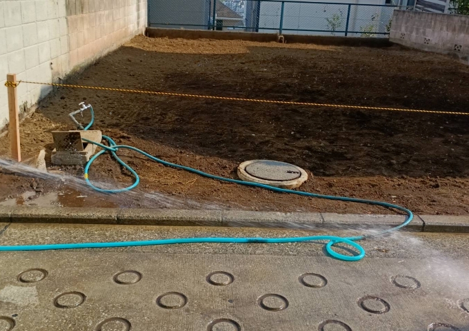 工事内容 | 単管枠組みシート養生・躯体解体工事(手壊し併用)・基礎撤去工事・土間撤去処分・樹木撤去処分・残土鋤取り撤去処分・石綿事前調査 |