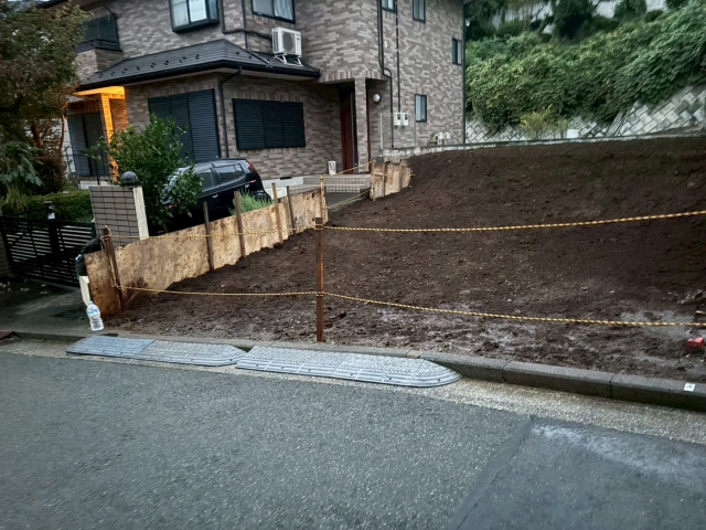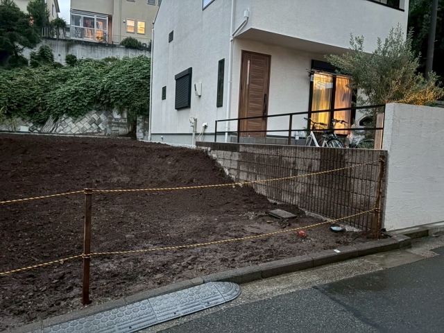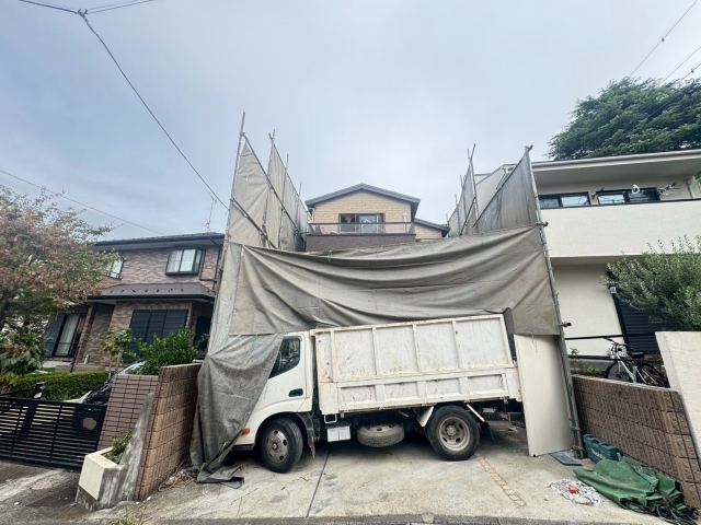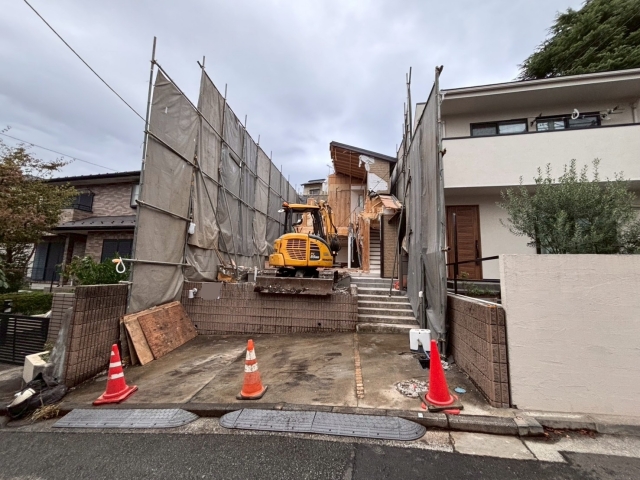 | 工事内容 | 単管枠組みシート養生・躯体解体工事(重機)・基礎撤去工事・土間撤去処分・CB撤去処分・残土撤去処分 |