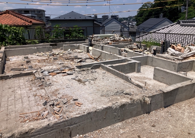 工事内容 | 養生工事・躯体解体工事・基礎撤去工事・土間撤去処分・重量ブロック塀撤去処分・バルコニー他撤去処分・樹木下草撤去処分・庭石・敷石撤去処分・門扉・物置・フェンス撤去処分・土出し・検体採取石綿含有分析調査 |