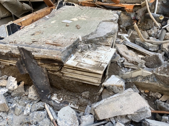 | 工事内容 | シート養生・躯体解体工事(重機)・基礎撤去工事・土間撤去処分・CB撤去処分・鉄骨架台撤去処分・大型バルコニー撤去処分・物置撤去処分・アスベスト検体調査・地中埋設物撤去処分 |