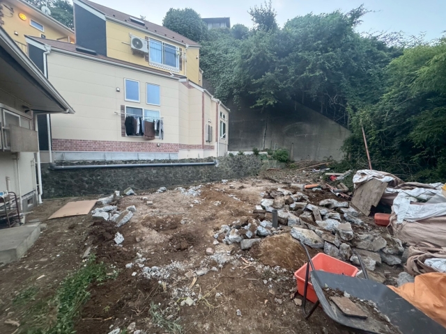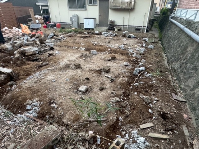 | 工事内容 | シート養生・躯体解体工事・基礎撤去工事・屋内残置撤去処分・屋外不要物撤去処分・アスベスト事前調査 |
