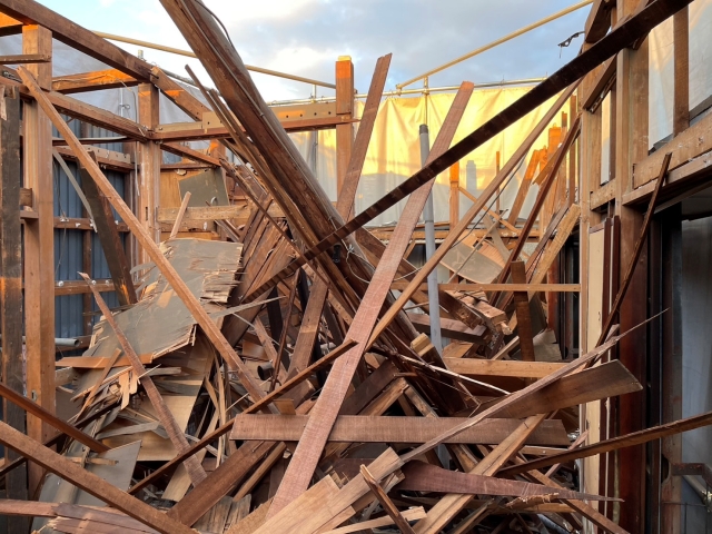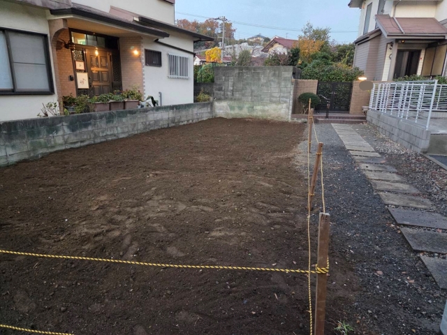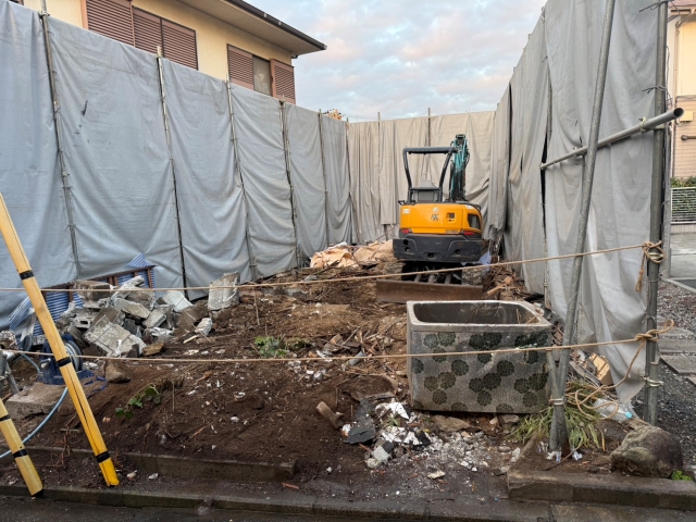 | 工事内容 | シート養生・躯体解体工事(重機)・基礎撤去工事・土間撤去処分・CB撤去処分・アスベスト事前調査 |