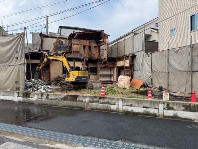| 工事内容 | 養生工事・躯体解体工事・基礎撤去工事・土間撤去処分・コンクリートブロック塀撤去処分・化粧Cブロック塀撤去処分・組立式土止め撤去処分・樹木下草撤去処分・庭石・敷石撤去処分・門扉・スライド門扉撤去処分・検体採取石綿含有分析調査 |