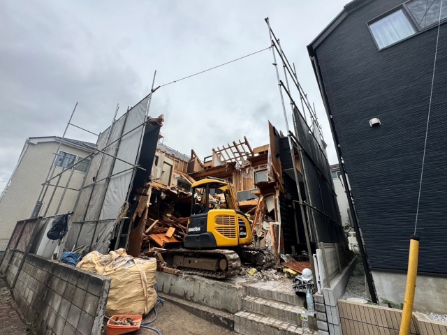 工事内容 | 単管枠組みシート養生・躯体解体処分・基礎解体処分・屋根裏撤去処分・土間撤去処分・タイル土間撤去処分・CB撤去処分・植栽撤去処分・庭石撤去処分・敷石撤去処分・カーポート撤去処分・サンルーム撤去処分・アスベスト事前調査・残置物回収処分・べた基礎撤去処分・埋設物撤去処分 |