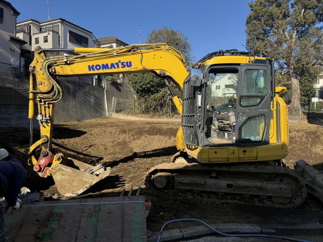 敷地が広く工事しやすい現場でしたが前面道路が狭いためあまり大きい重機が使えないため工期のかかる工事でした。