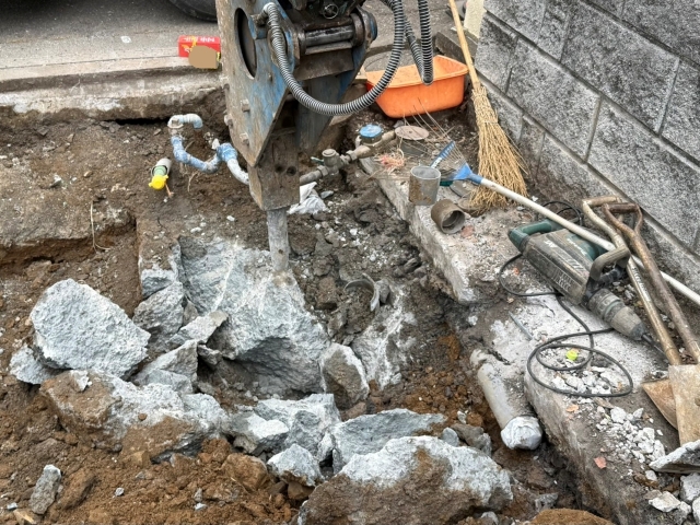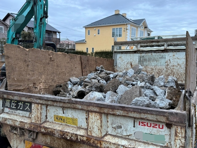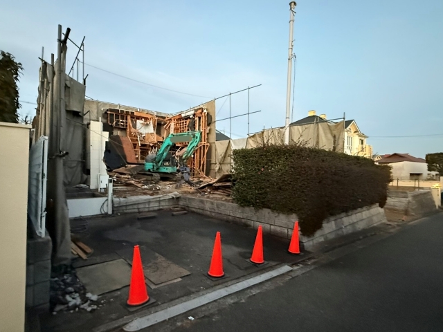 | 工事内容 | シート養生・躯体解体工事・基礎撤去工事・アプローチ階段土間撤去処分・タイル土間撤去処分・アスファルト塀撤去処分・樹木撤去処分・北側フェンス撤去処分・物置撤去処分・電柱撤去処分・アスベスト事前調査・埋設物撤去処分 |
