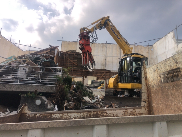 | 工事内容 | シート養生・躯体解体工事・基礎撤去工事・土間撤去処分・ブロック塀撤去処分・擁壁撤去処分・樹木撤去処分・車庫撤去処分・アスベスト検体調査 |
