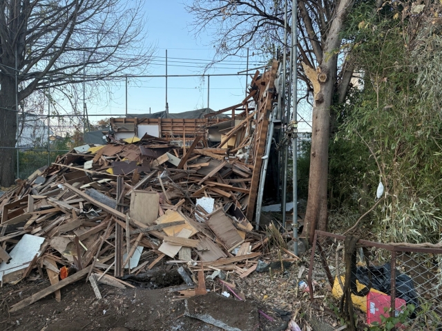 | 工事内容 | シート養生・躯体解体工事(重機)・基礎撤去工事・CB撤去処分・樹木撤去処分・庭石撤去処分・不用品回収・アスベスト検体調査・アスベスト外壁塗材除去工事 |