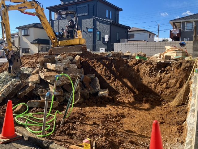 | 工事内容 | シート養生・躯体解体工事・基礎撤去工事・土間撤去処分・CB撤去処分・樹木撤去処分・庭石撤去処分・大谷石擁壁・残土出し・簡易土留め設置費用・アスベスト事前調査 |
