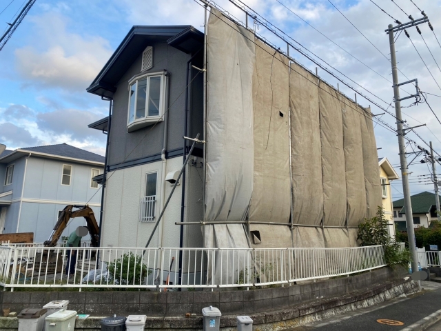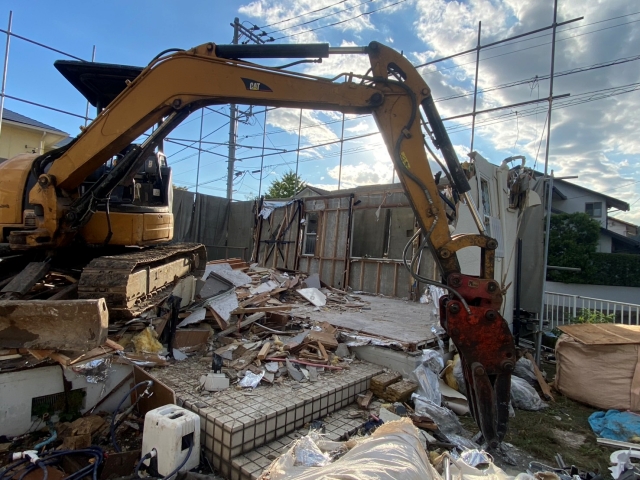 | 工事内容 | シート養生・躯体解体工事(重機)・基礎撤去工事・土間撤去処分・CB撤去処分・ウッドデッキ撤去処分・樹木撤去処分・大谷石撤去処分・スレート屋根みなし撤去処分・アスベスト検体調査 |