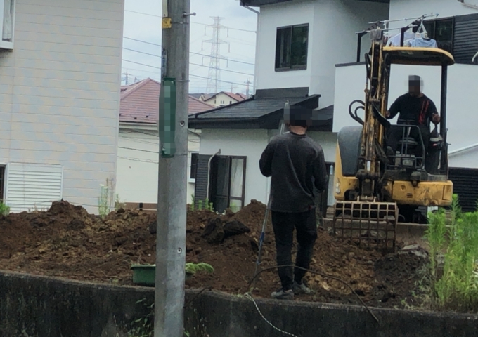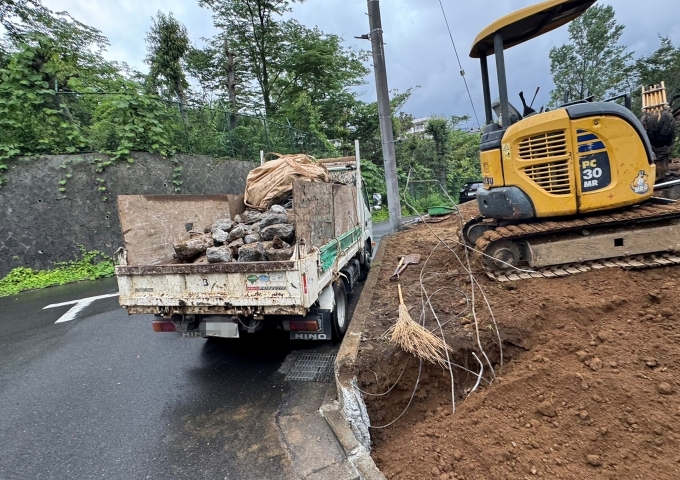 もともと砂利敷きの駐車場で草むしり、RC擁壁一部撤去敷地内試掘と天地返しのご依頼でした、
